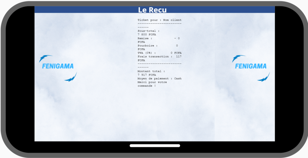 ” Avec Fenigama, le processus de commande est beaucoup plus fluide. Le paiement en Cach, Wave ou Orange Money et le reçu automatique par WhatsApp rendent notre travail bien plus simple. Vraiment recommandé ! “