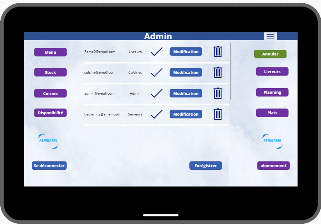 En résumé, toute la gestion quotidienne se fait via l’interface Admin, le centre de contrôle de Fenigama..