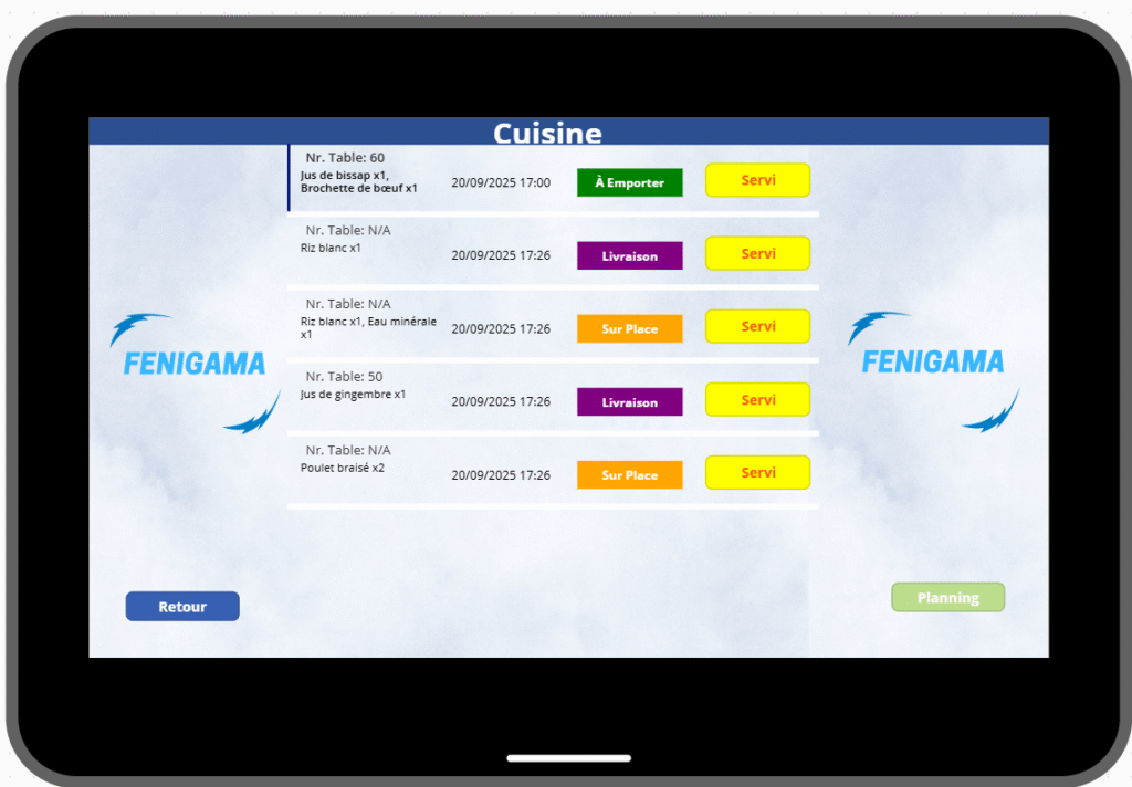 ” Fenigama garantit que les commandes arrivent directement et sans erreur en cuisine. Nous pouvons ainsi travailler plus vite et plus efficacement, sans malentendus. Super pratique pour notre équipe ! “